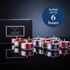 L'échantillonneur de bougies à réchaud contient 4 bougies à réchaud de chaque fragrance After Dark Chaleur ambrée, Velouté de prunes and et Cassis cachemire.