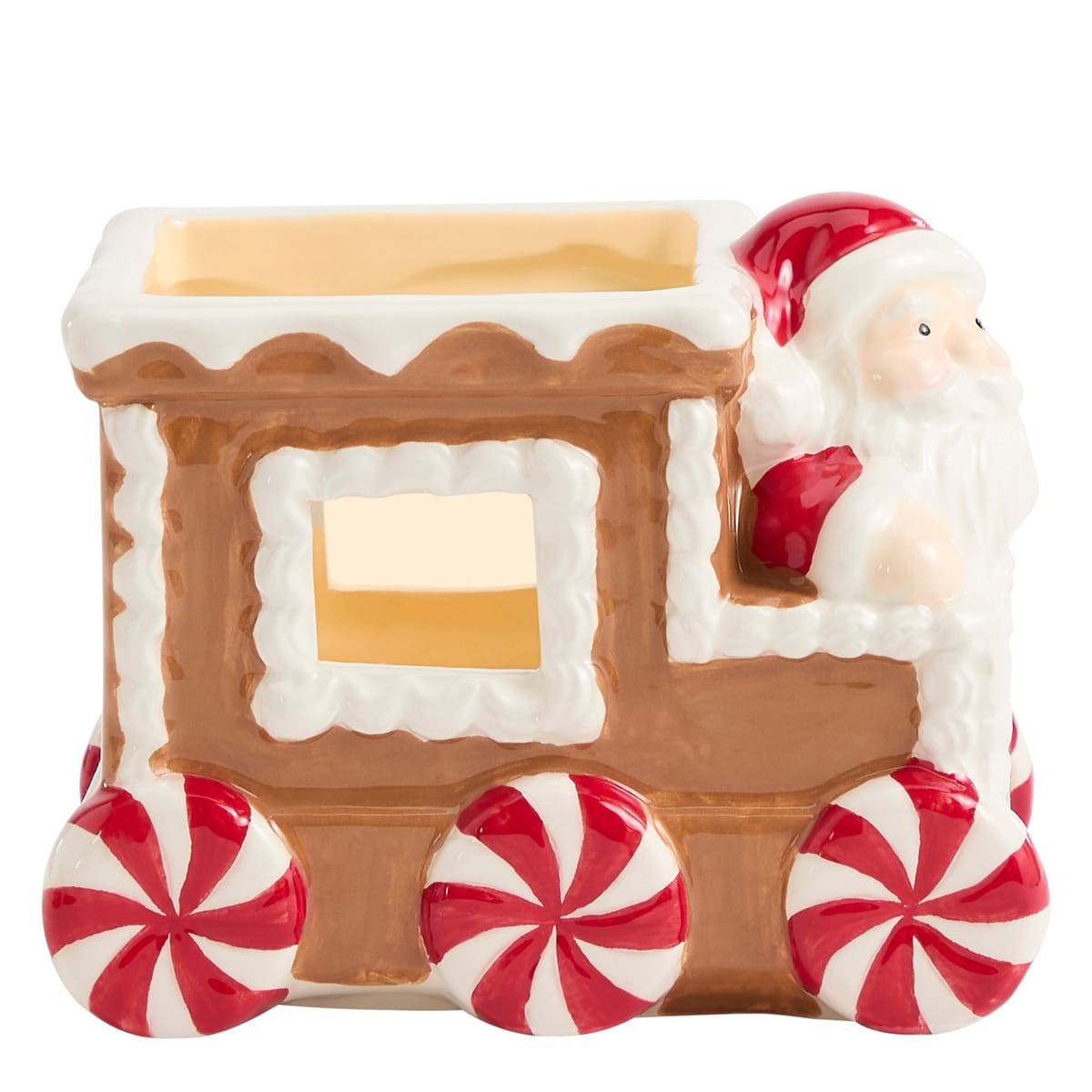 Tous à bord pour une fête pleine de fantaisie ! Ce ravissant trio présente un train en pain d’épices sculpté et peint à la main. Fabriqué en dolomite et décoré façon biscuits glacés, chaque pièce apporte une lueur ludique à votre déco saisonnière. Conçu pour accueillir vos bougies à réchaud préférées, c’est un ajout gourmand à votre déco des fêtes.