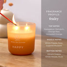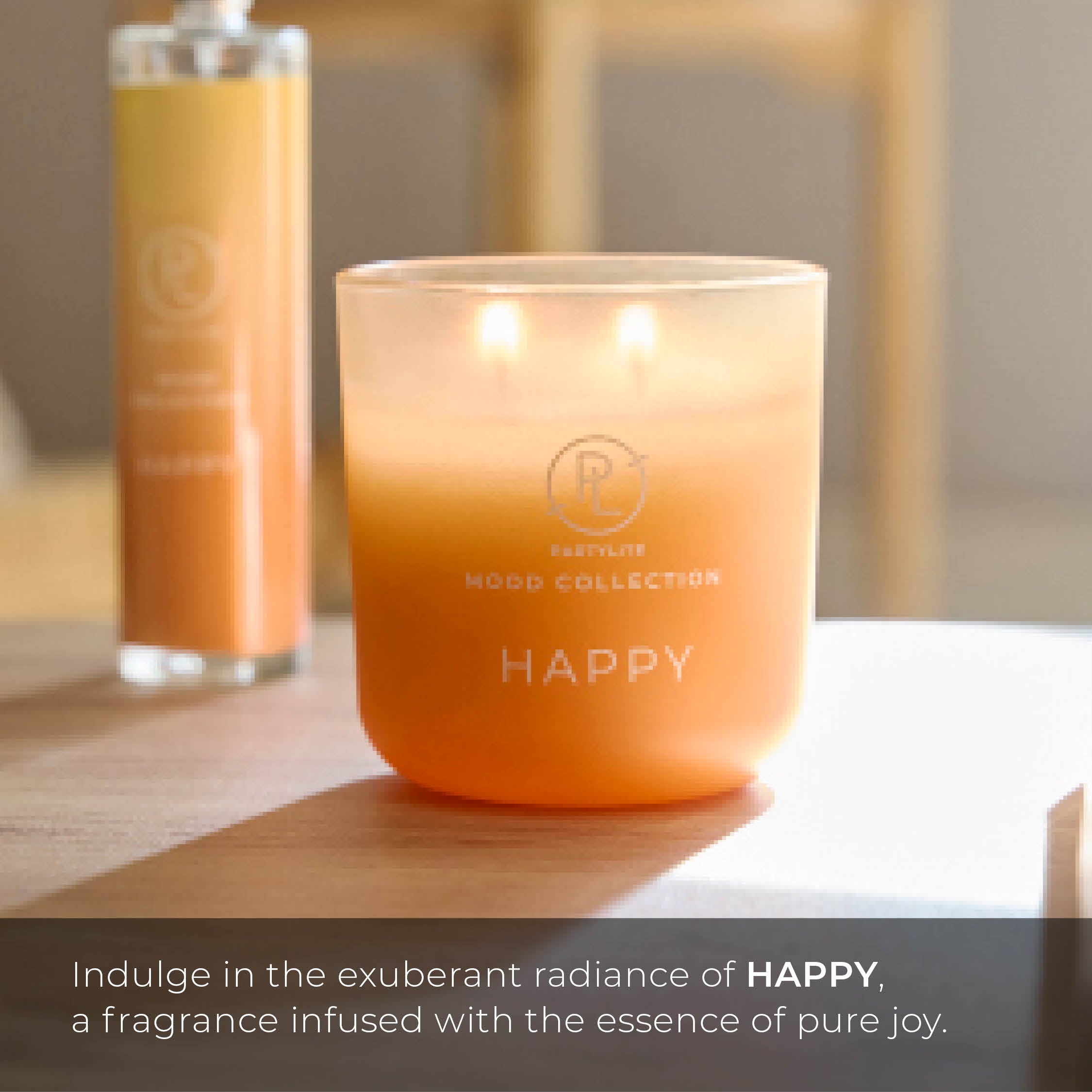 Illuminez vos espaces de la joyeuse fragrance de notre Pot à bougie ombré Mood Happy. Cette élégante bougie 2 mèches présente un fascinant effet d'ombre qui s'intègre à tous les espaces. Les arômes de Mandarine tonique et de légères notes florales égayeront n'importe quelle pièce et stimuleront votre moral. Les notes de freesia blanc et de rose se combinent à la rhubarbe, ajoutant une dimension sucrée et florale, tandis que les notes vertes vibrantes, de bois blanc et de musc créent une atmosphère délicieuse et stimulante dans n'importe quelle pièce. Idéal pour ajouter une touche de gaieté à votre intérieur et rendre chaque instant un peu plus lumineux.