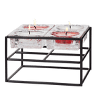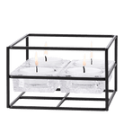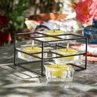 Créez une ambiance stylée et minimaliste avec ce porte-bougie à réchaud en verre et en métal. La structure métallique intègre quatre porte-bougies en verre, conçus pour les bougies à réchaud standard ou de grande taille, et vous laisse créer votre propre ordonnancement. Veuillez ne pas superposer les bougies allumées.