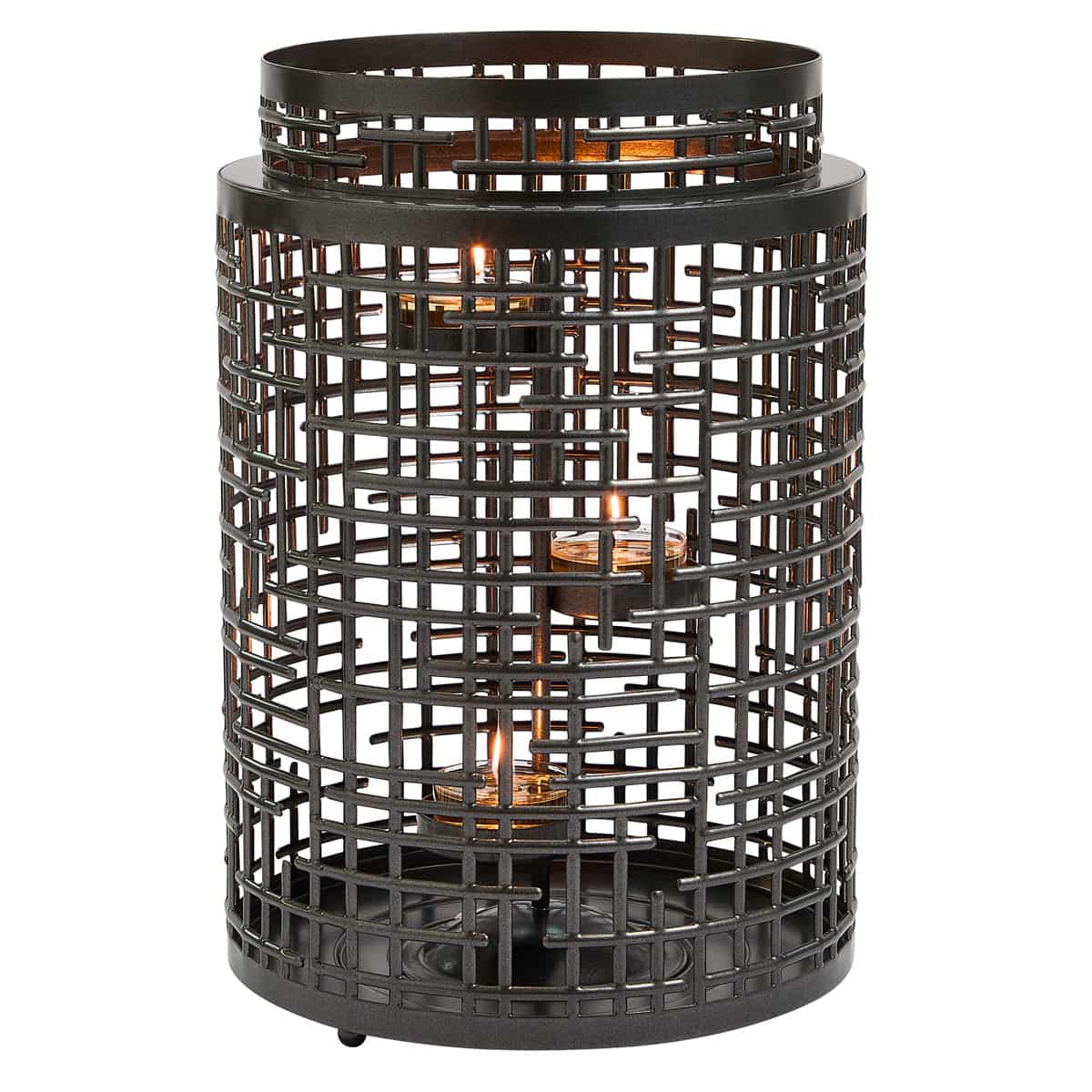 Inspired by our popular Contempo Holders, this newly improved style features a modernized design with straighter lines and an industrial tree-bark gray color. This hurricane holder's smaller size fits seamlessly into more spaces in your home, offering style and functionality. It includes a 3-tealight tree, making it perfect for creating a sleek, sophisticated ambiance in any room.