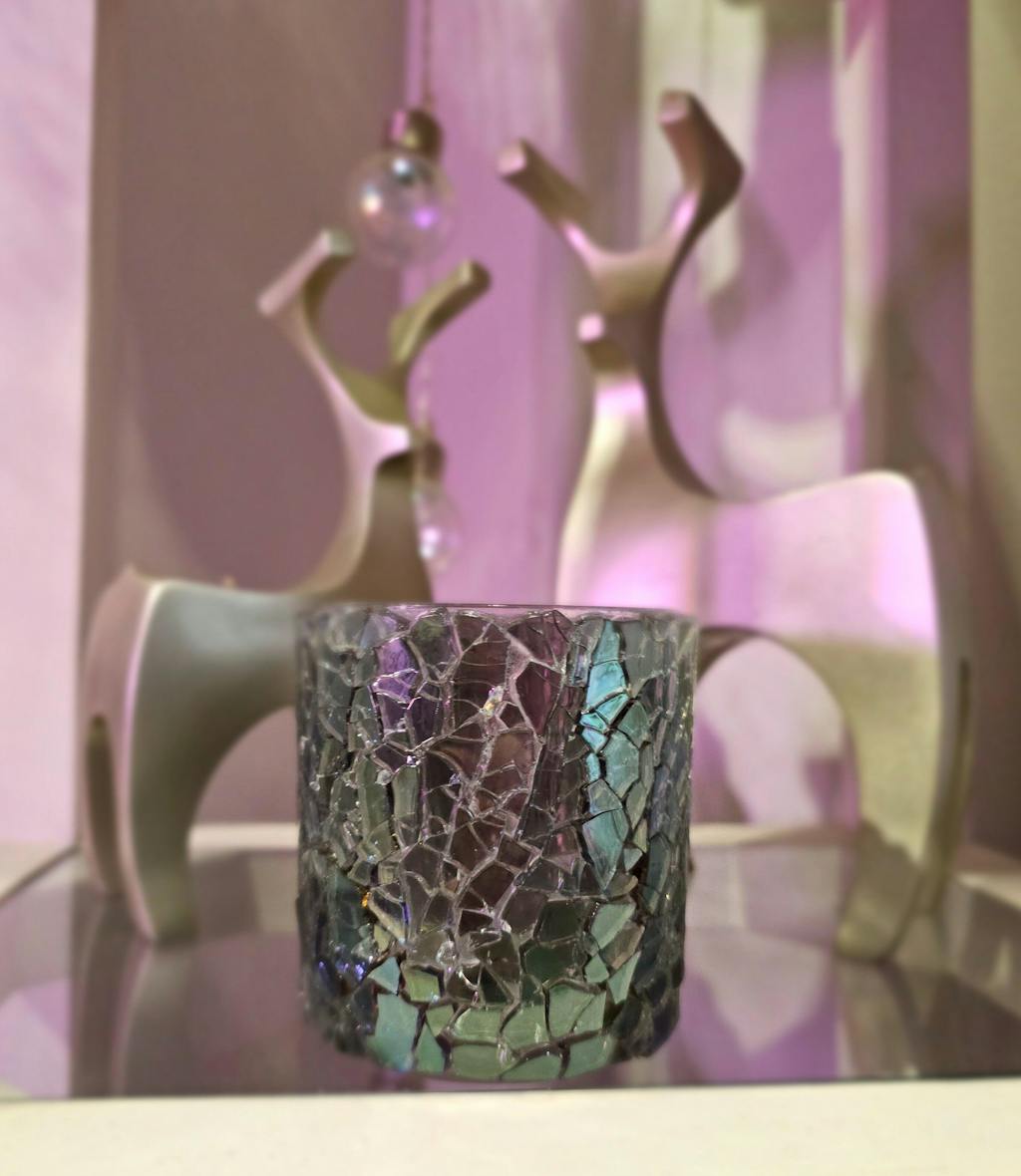 The crushed glass in this Opaline Tealight Holder creates abstract light patterns on your walls and ceilings. You can use it with one of our best-selling tealights and surround yourself with a soft, colorful and varied ambience.