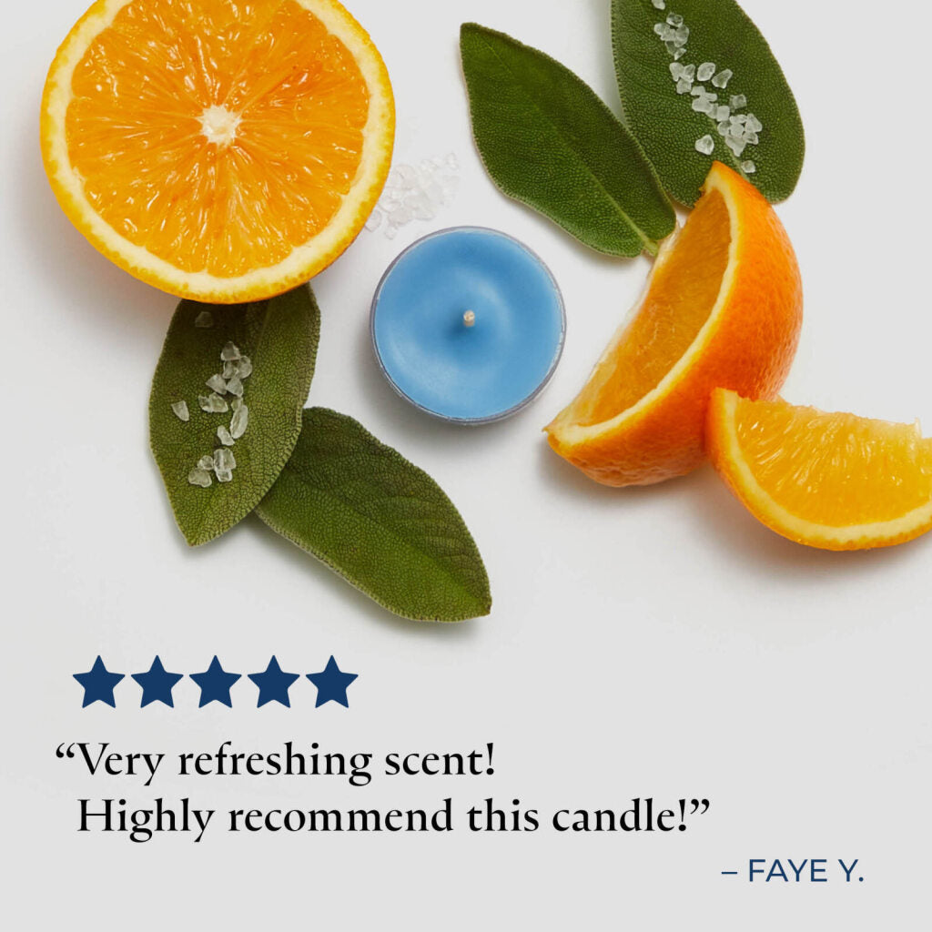 Choose better quality scented tealights that fully liquefy for the best fragrance throw, plus the cleanest burning wax. This 12-pack of Sea Salt & Sage fragranced candles features the freshness of blue sage and citrus mingled with beachy coconut and sea salt, plus restful woody notes of tranquility.