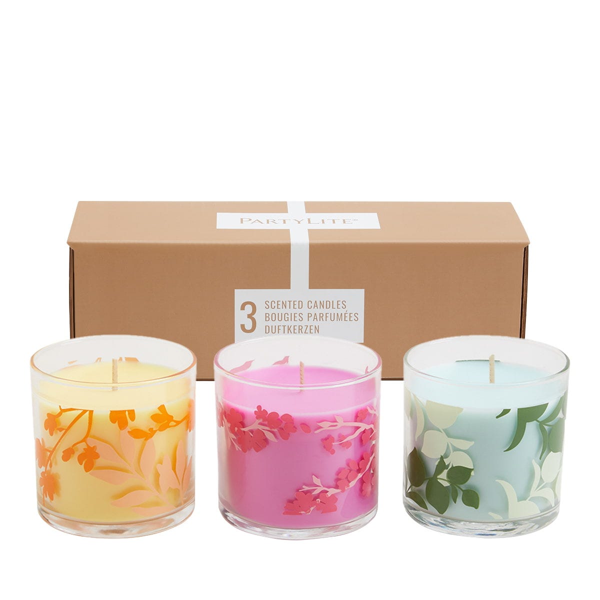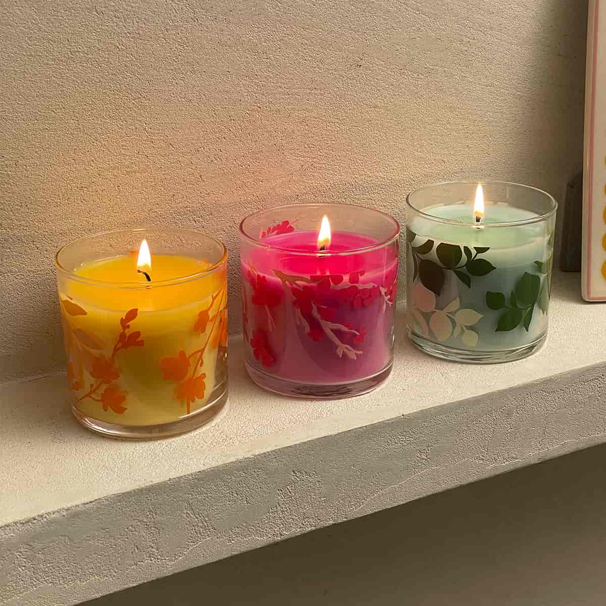 Three Tropical Fruits poured into a trio of super-cute decorated candle jars for a perfect summer scent blend. This set of three includes our Honeydew, Dragon Fruit Zest and Pink Pineapple Colada aromas.
